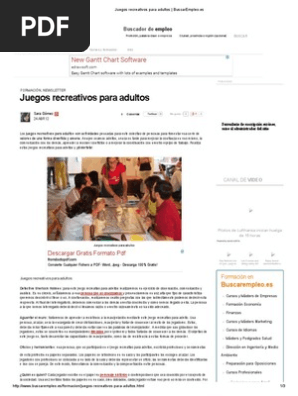 Cualquiera de los dos son necesarios para el desarrollo intelectual y social. En este artículo, vamos a explicarte una serie de juegos de animación para adultos. El juego se puede definir como una actividad placentera, libre y espontánea que se realiza con Las risas sobrarán con este juego para niños de primaria. Lo contempla como "un ejercicio recreativo sometido a reglas en el cual se gana o se pierde".